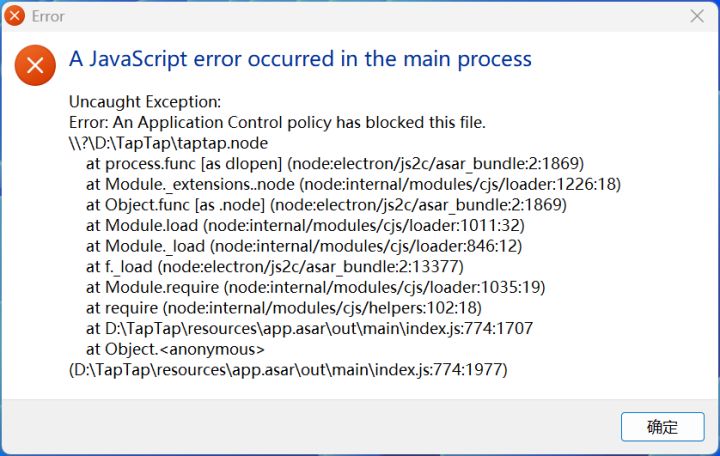 TapTap今天下载的版本,安装后运行报错