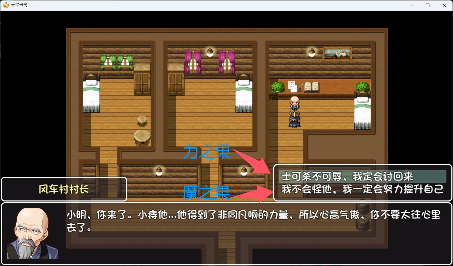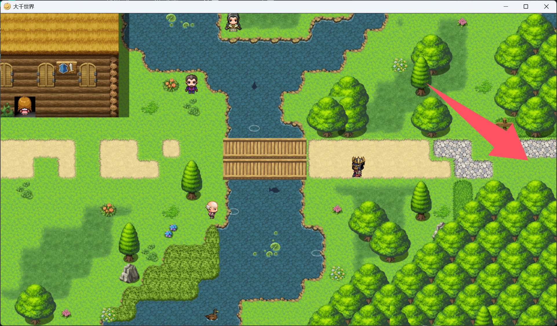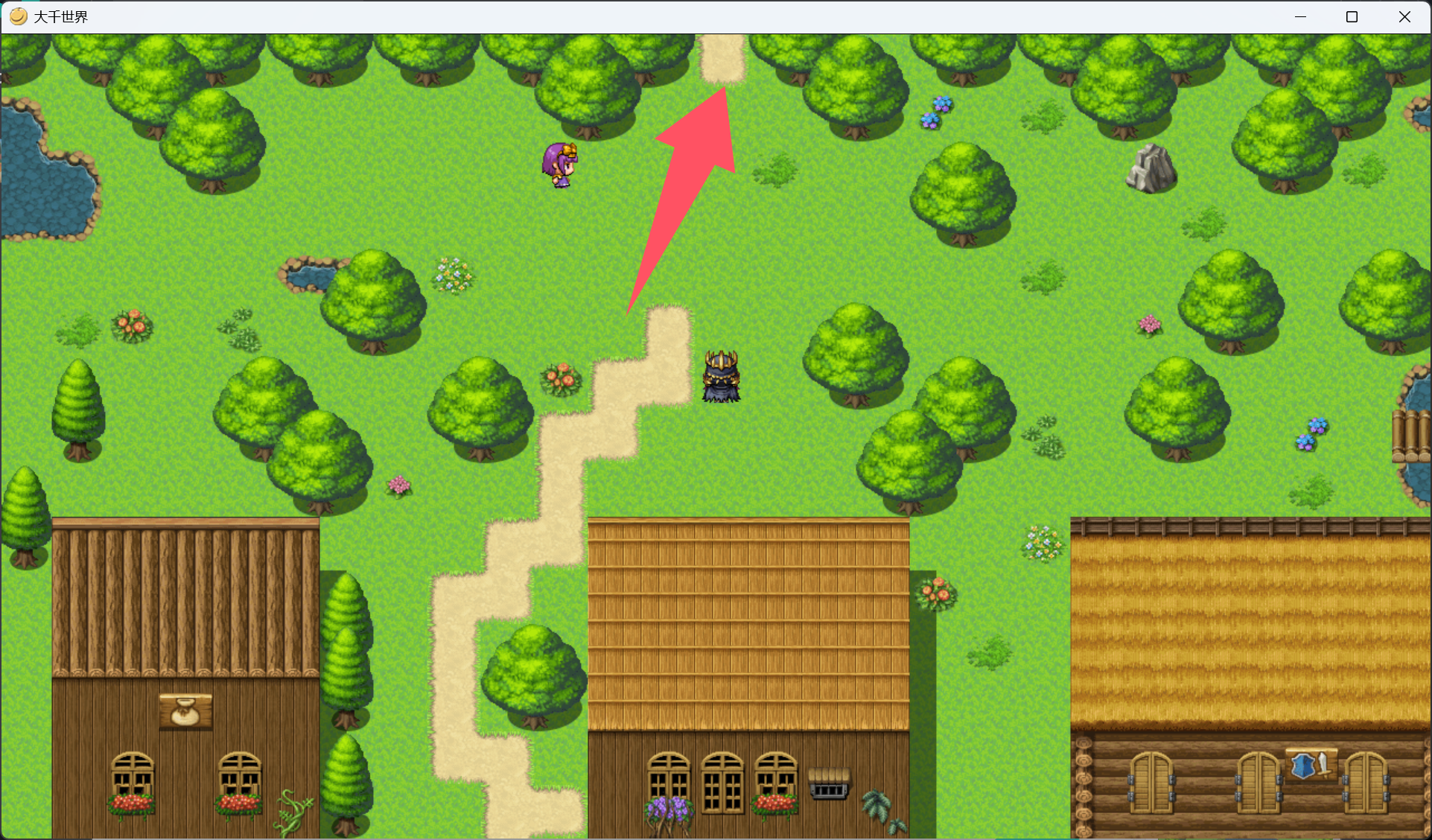现在有两个方向,一个是去村后树林过剧情,然后打史莱姆,另一个是先打史莱姆,再去过剧情,我这里先去打史莱姆。