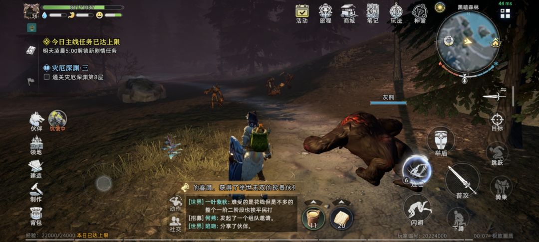 (这里说明一下,遗迹里的树人刷新时间较短,击杀后一分钟刷新,唯一注意点是角色不要站在遗迹范围内,不然怪不会刷新,空闲时间可以去旁边挖点黑水晶再回来刷)