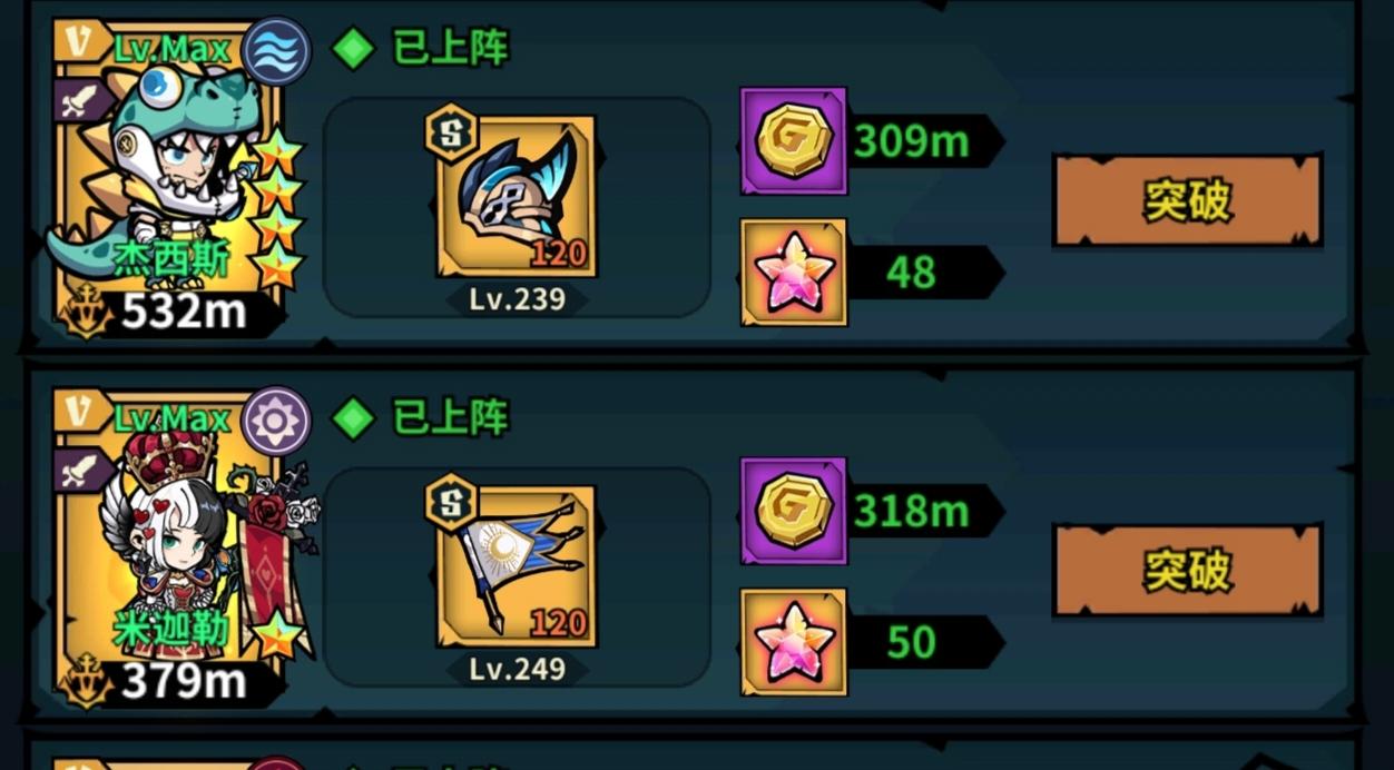 目前鲨鱼和米迦勒练度还是太低,全靠无敌,后面练度拉起来就可以上副c了,2c2t1奶这样的。
