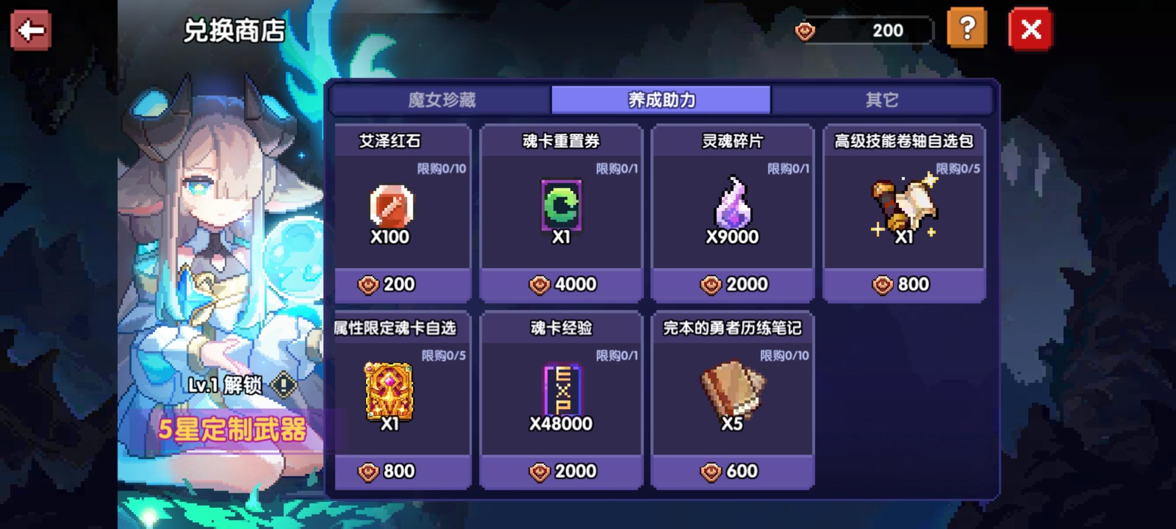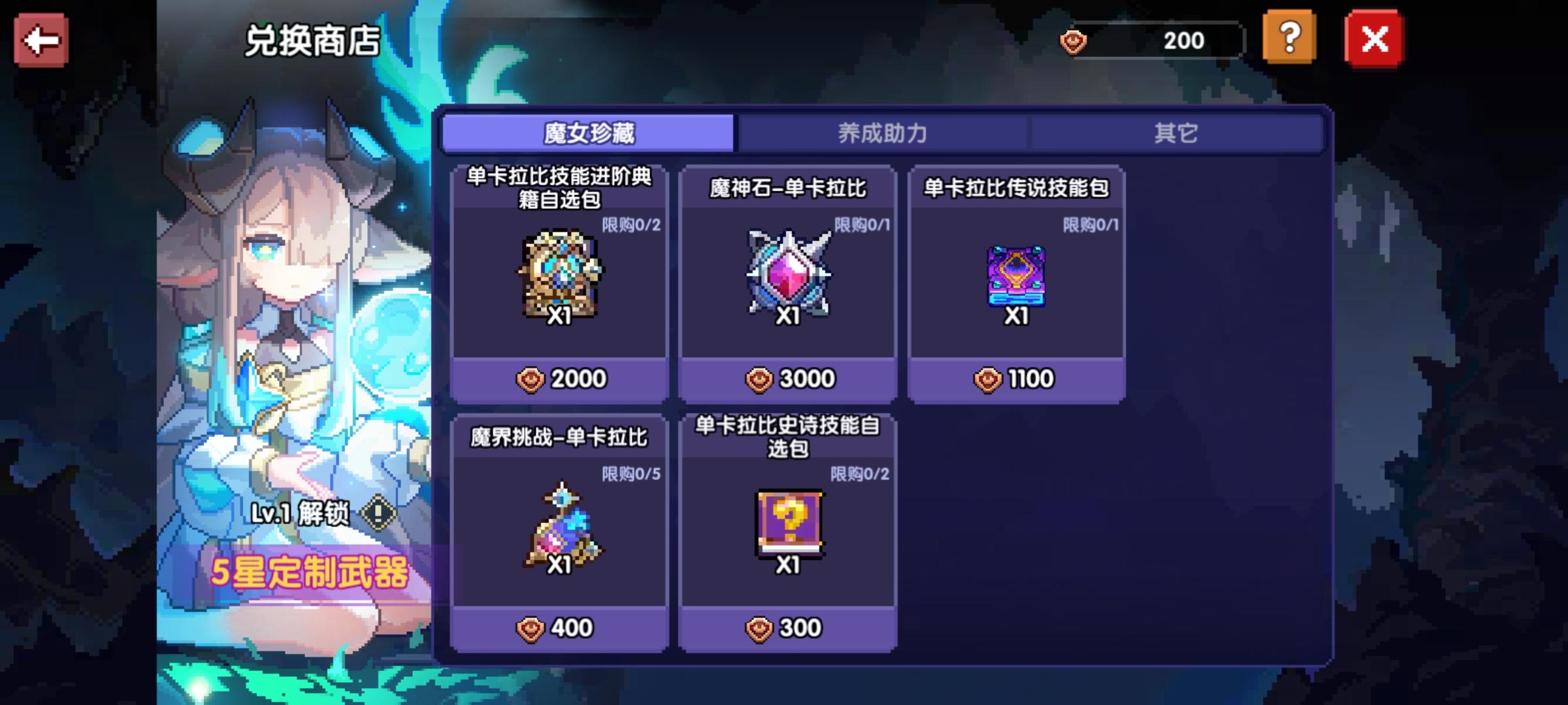 兑换铺图太长了就不发了,优先兑换首先就是钥匙,然后就是蓝色的经验卷轴。还有万古石,剩下缺什么材料就换什么。前期不建议换随机宝石和随机宠物,都不缺的话可以换个重置卡。