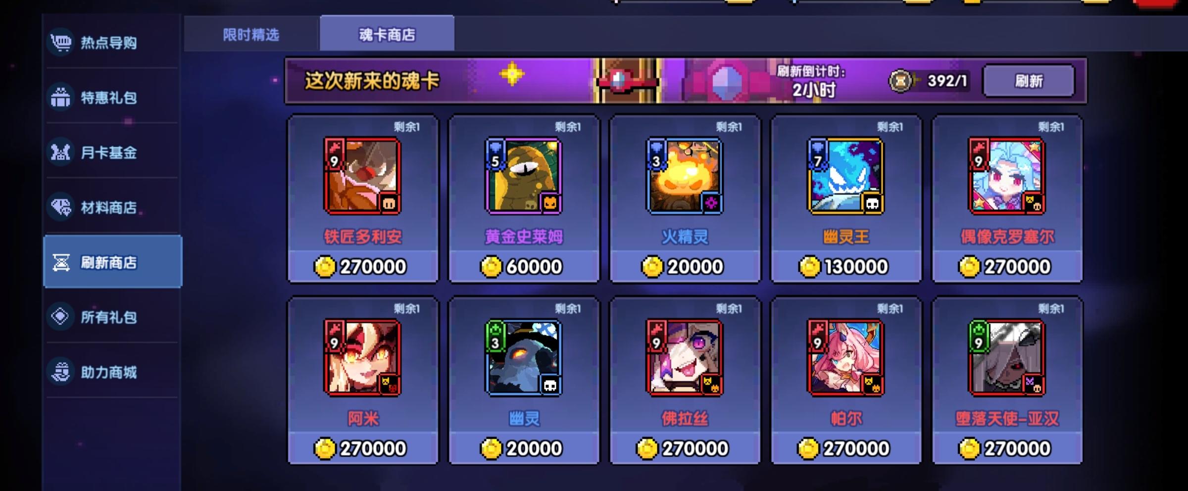 刷新商店主要是购买技能和偶像克罗魂卡(刷新商店唯一保值的)