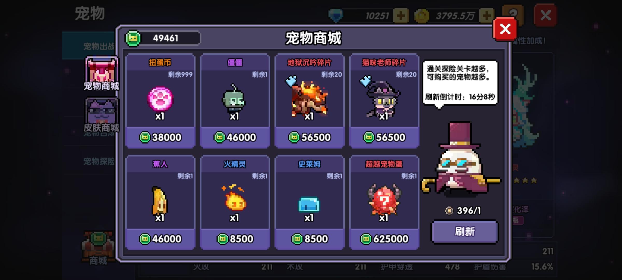 宠物商城刷新就4个小时用刷新币也可以,主要兑换的只建议扭蛋币