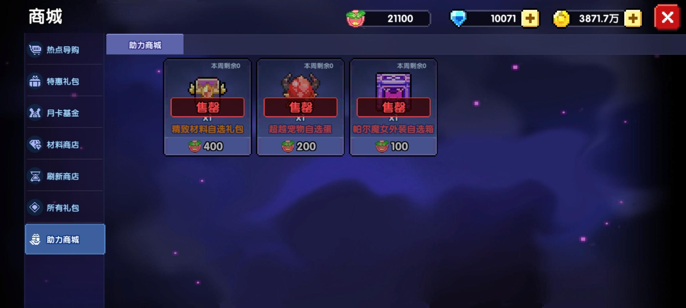 助力商店没什么说的,刷的多的话清空就行了。刷的不多也至少把外装买了。