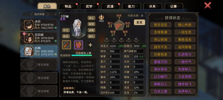 这个档我没加入老头门,直接第一个进的琅琊剑阁,把王大锤跟大师兄二师兄收进家园后一直做到少阁主后退的门派,然后降服了琅琊剑阁。