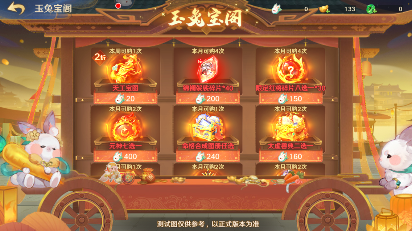 本次更新后,桂月盈礼活动中玉兔宝阁调整部分商品兑换,详情如下: