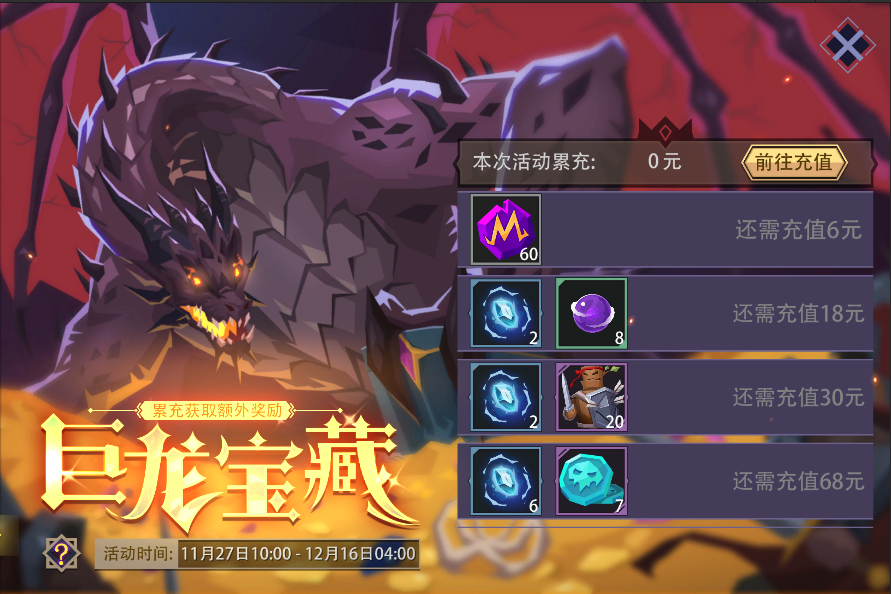 活动时间:11月29日04:00 - 12月01日04:00;12月13日04:00 - 12月15日04:00