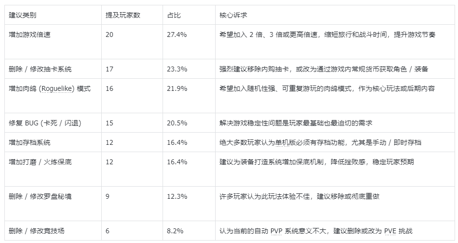 其他更细致,更长的建议,因为篇幅原因,就不在本帖中罗列,接下来,我们会对每一条意见进行评估,但正如之前所说,由于时间及能力问题,不一定能对每一条建议都一一满足。我们争取下周输出单机版的设计大方向。比如肉鸽模式是怎么做的?以及能确定删减,保留以及新增的功能与玩法,届时再与大家同步。