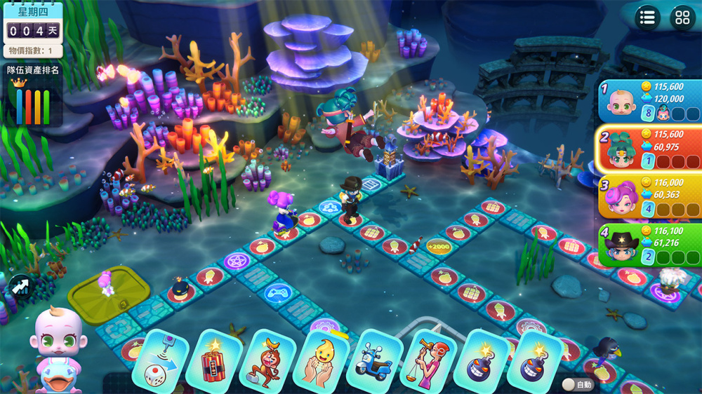 大富翁11游戏拥有16个游戏角色自由选择,每个角色所具备的金钱、股票、道具、支付倍数等皆不相同,更有丰富的卡片道具和奖惩制度,以及全新的游戏粒子效果,带给玩家充满乐趣和挑战的游戏体验。在比赛中,你需要投掷骰子来决定自己的前进步数,通过投资地产、买卖股票、使用卡片等方式赚取金钱,比赛结束时,唯一未破产或资产最多的队伍为获胜方。