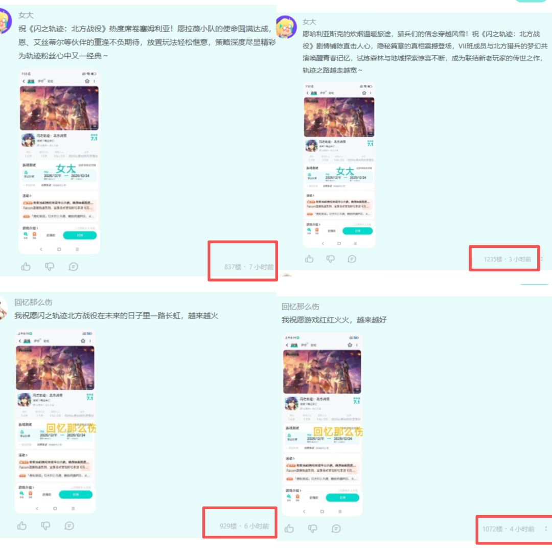 2.评论留下你对《闪之轨迹:北方战役》的祝福,并且附上TapTap id的报名测试水印截图