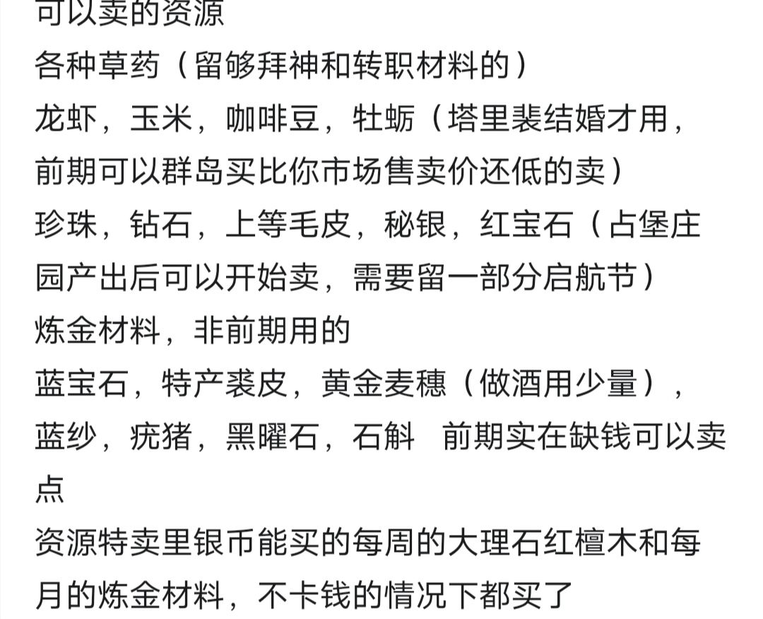 糖(结婚刷声望和做朗姆酒用)不是很缺有最低价买就行,熊掌也看着买点。