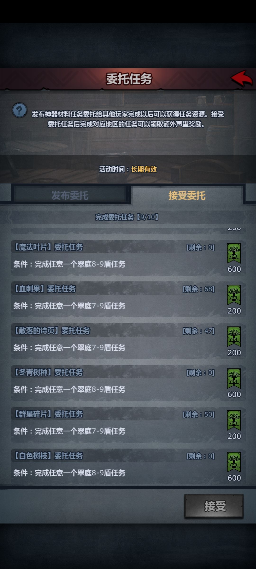 记得刷哪里任务就切换对应的神器收集材料,五盾以上跑商也算。