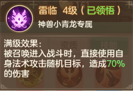 主动技能的同时还附带了许多额外效果:青藤、天兵、麒麟、青龙、仙兽……