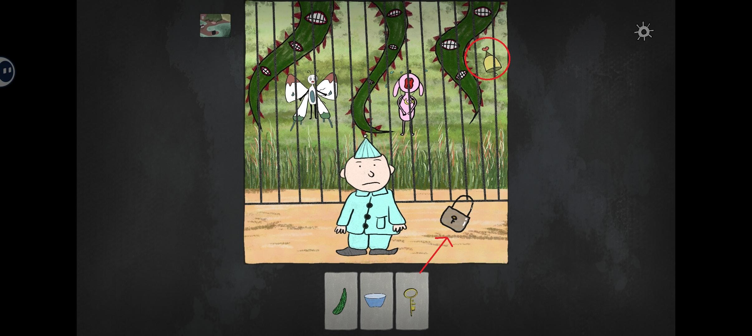 3:解锁全地图后到右上角场景,用钥匙打开锁,拿到铃铛。