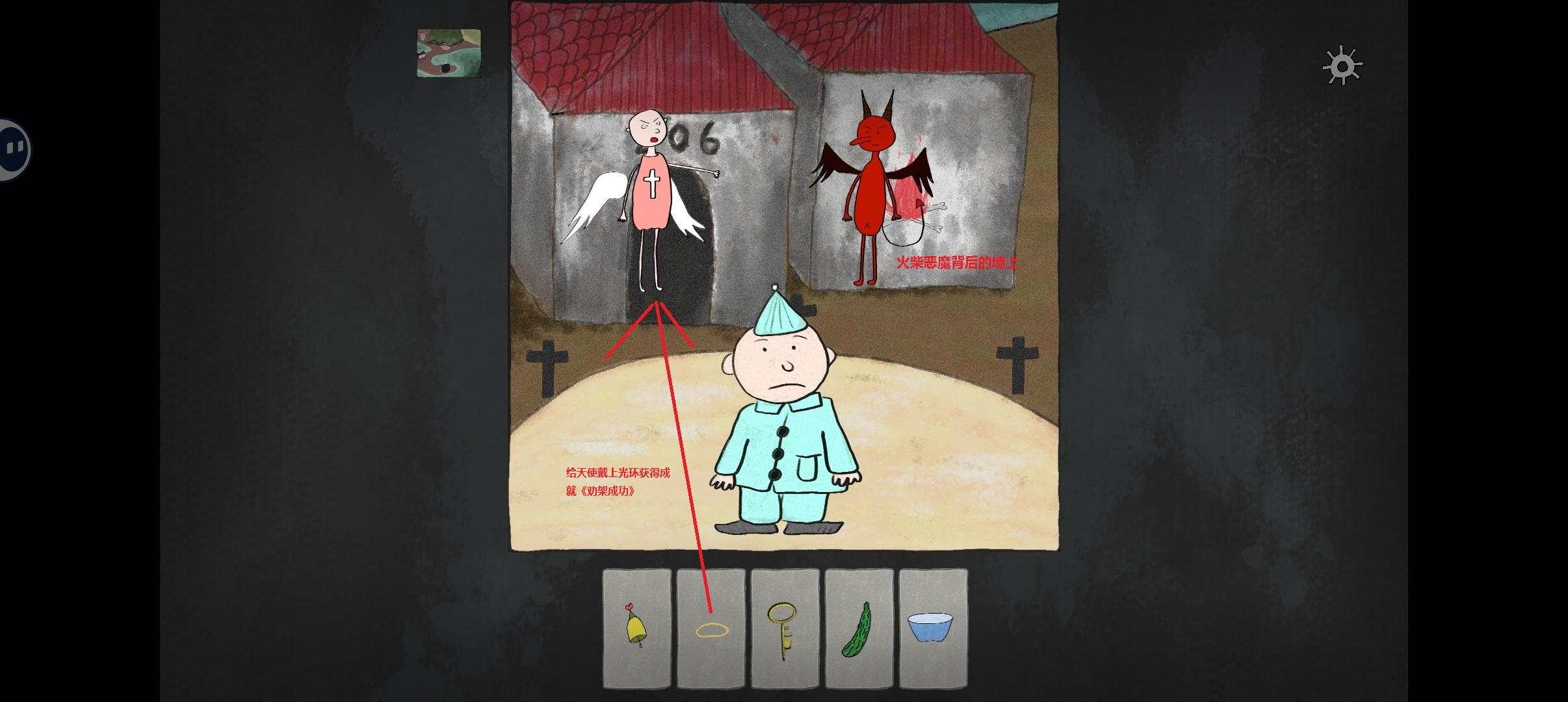 5-2:把光环给天使戴上,获得成就《劝架成功》,再拿到恶魔背后墙上的火柴。