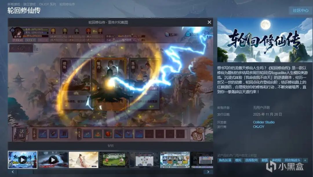 《轮回修仙传》是一款以修仙为题材的多结局多周目轮回式Roguelike人生模拟类游戏。玩家将沉浸式体验“我命由我不由天”直至龙傲天的逆袭剧本,经历一世又一世的劫难,轮回点化作登仙台阶,结识修仙路上的红颜道侣,合理规划你的修炼和行动,不断突破境界,直到你一拳轰碎这天道约束!本作将于在11月28日17:00上线Steam。游戏首发2周限时9折优惠17.91元(比我预料的低不少啊!)经过多轮新品节测试,目前DEMO版本其实也挺有内容的,也可以在买之前先行体验一番。