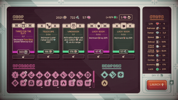 每过一天,你都会回到商店,用在战斗中获得的资源为飞船购买升级与强化。 这个模式上手很快,但想真正打穿 21 天,依然需要好好思考路线与构筑。