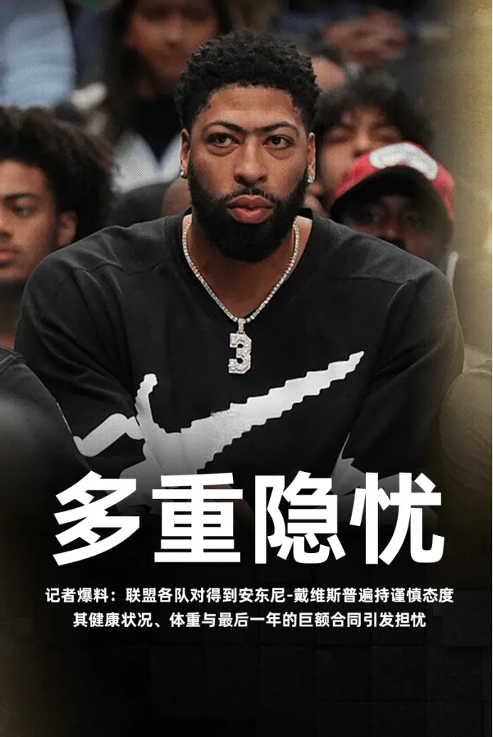 近日,据ESPN记者Tim Bontemps的报道,目前联盟各队对交易安东尼-戴维斯普遍持谨慎态度。
