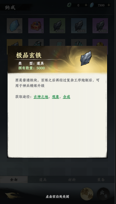 保留道具下方的获取途径跳转按钮,点击按钮即可直达道具获取场景,稀有道具的获取方式不再难找,修仙资源收集更高效。