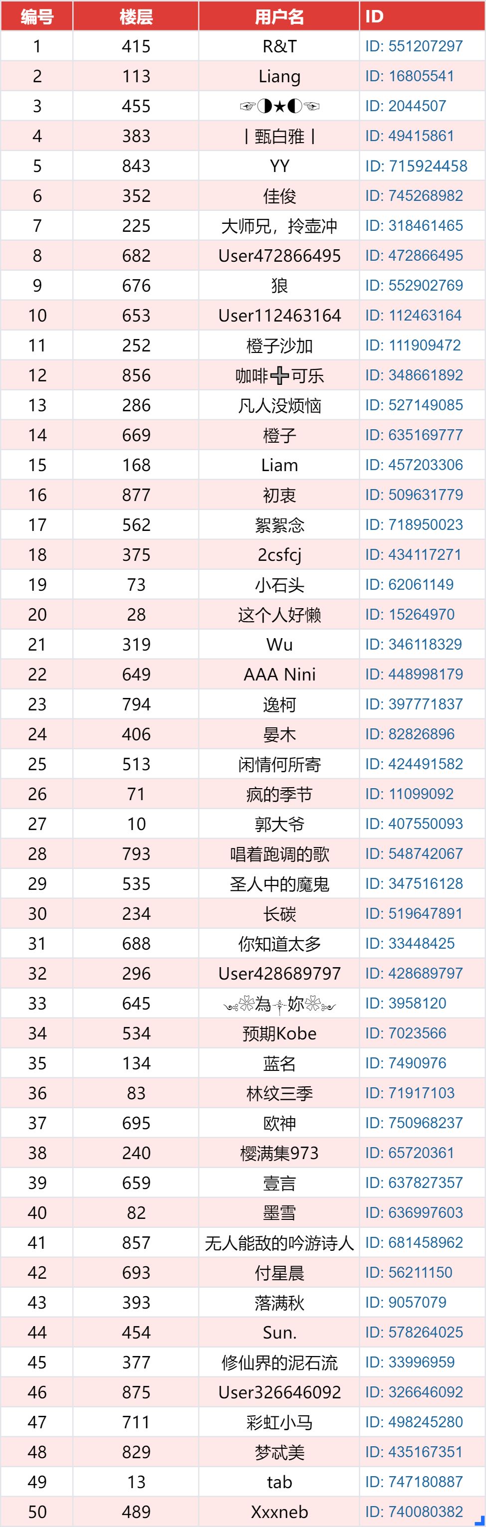 2、本次抽奖结果由随机数生成器产生,请注意本贴更新内容或中奖消息通知。