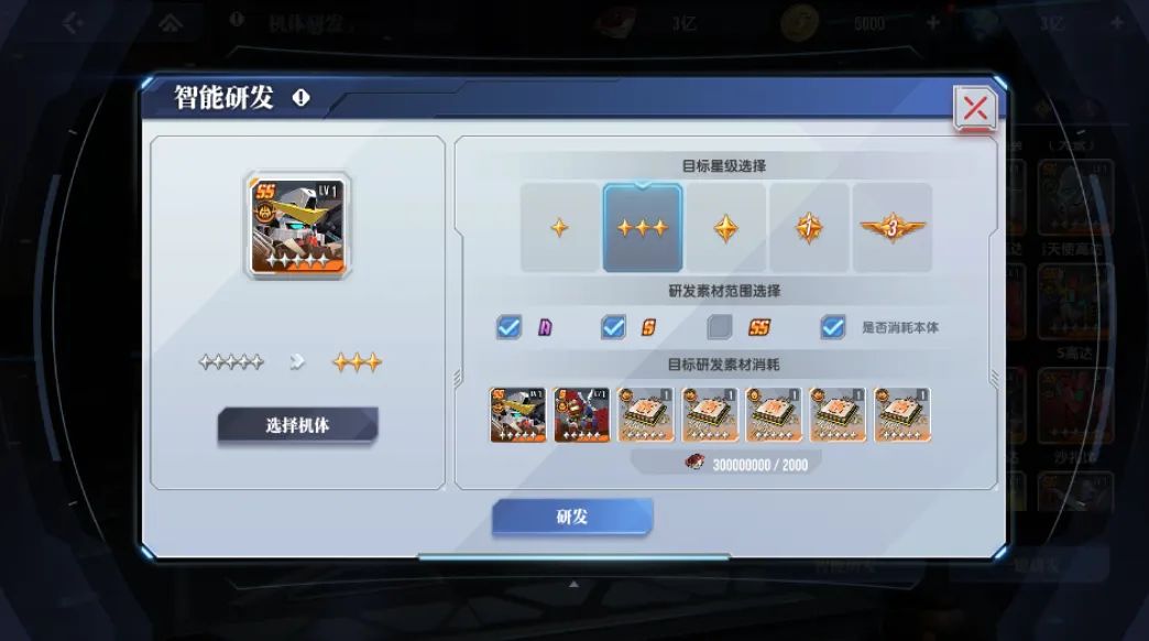 为了解决各位指挥官升星困难的问题,我们特地在这个版本新增了【智能研发】功能,现在指挥官可以使用此功能一键将机体一口气升到指定星级。