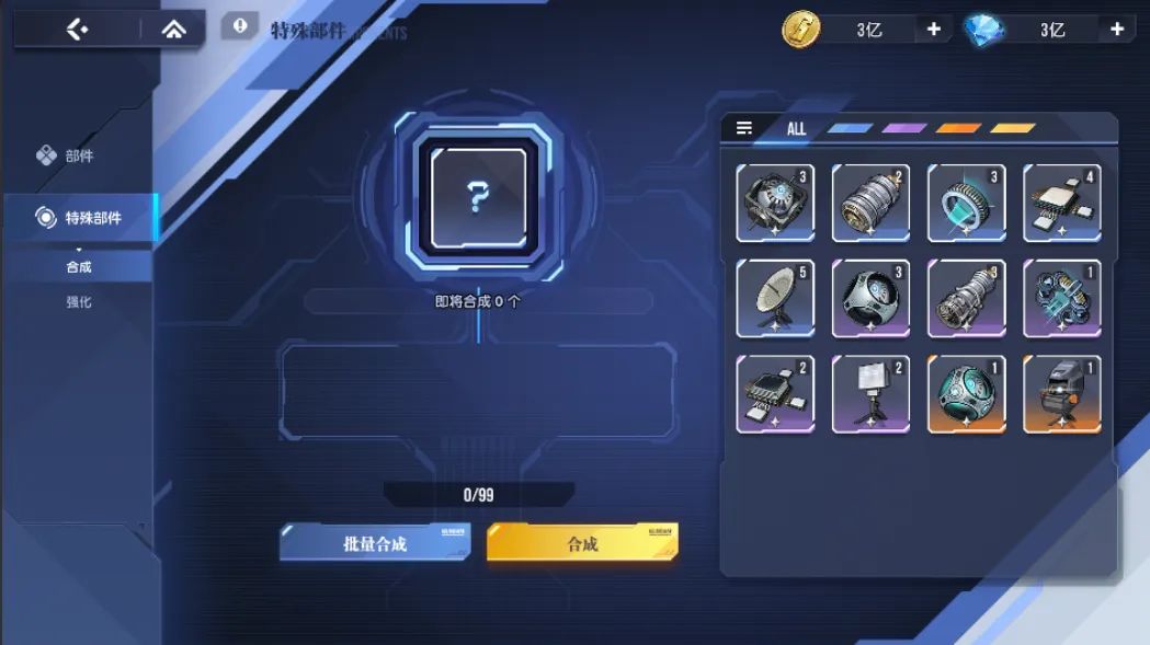 本次更新后,指挥官可在【重工】-【部件研发】菜单中直接找到特殊部件的合成与强化选项,后续操作更便捷高效。