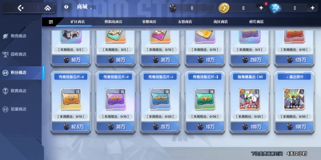 【矿区争夺-矿区商店】新增商品:独角兽高达(NT-D)碎片、ν高达碎片