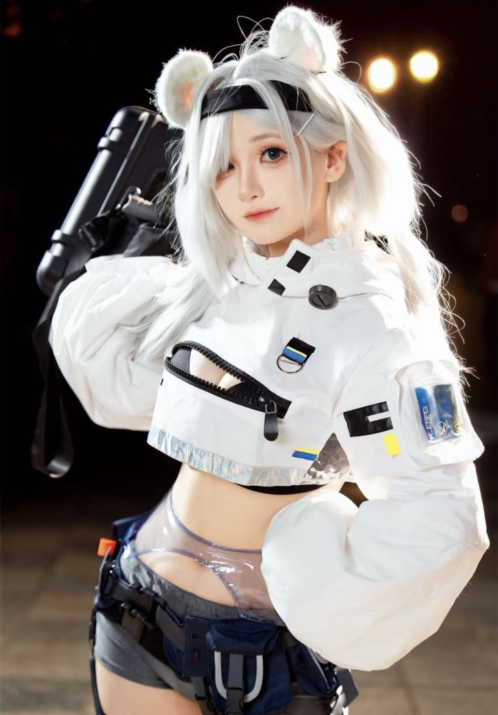 服装细节更是戳中审美:蓬松的白色外套自带未来感,拉链和金属扣的设计利落又精致,手臂上的装饰和透明腰封把“机能风+轻性感”的平衡感拉满,背着的装备还衬出了飒爽的气场。