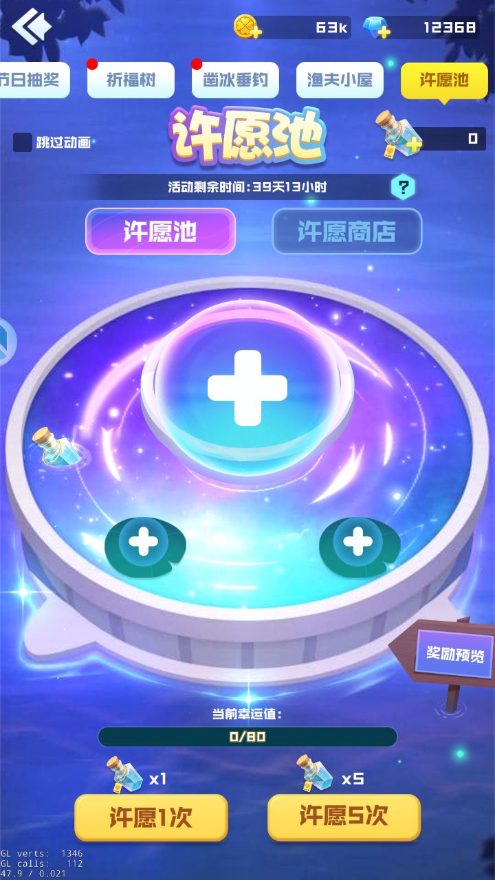 许愿池:活动期间,球宝们需要首先选择一个大心愿及二个小心愿,之后可消耗许愿瓶参与许愿池抽奖,每次抽奖会获取一定数量的愿望石,可在许愿商店兑换心仪的外显、众多传说球球等精美礼物;活动结束后,未使用的许愿瓶和愿望石将按照(1许愿瓶=10钻石、1愿望石=1钻石)的比例转换为钻石,请球宝们尽量消耗完哦。