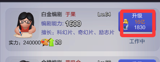 用于提升艺人词条-剧本词条,提升剧本词条跟艺人词条可以获得更高的票房首映加成&属性加成,从而提高拍摄电影质量