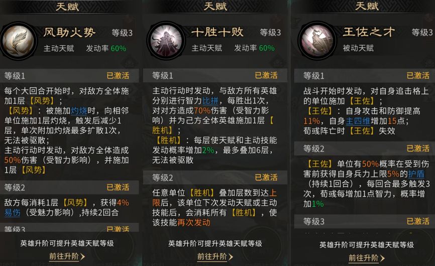 郭嘉的天赋技能【十胜十败】,可以为友军施加【胜机】,可以提升天赋和主动技能发动概率。