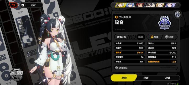 #绝区零 #绝区零将临未抵的深渊 面板暴击率(如果没有强迫症的话)99.4%就大毕业了,驱动盘:4山大王2啄木鸟,除了4号位,其他位置的副词条都至少要有暴击率+3,4号位暴击率,5号位随意(挑副词条暴击率高的带就可以,毕竟输出占比不大),6号位能量自动回复/冲击力(依旧选副词条暴击率高的)