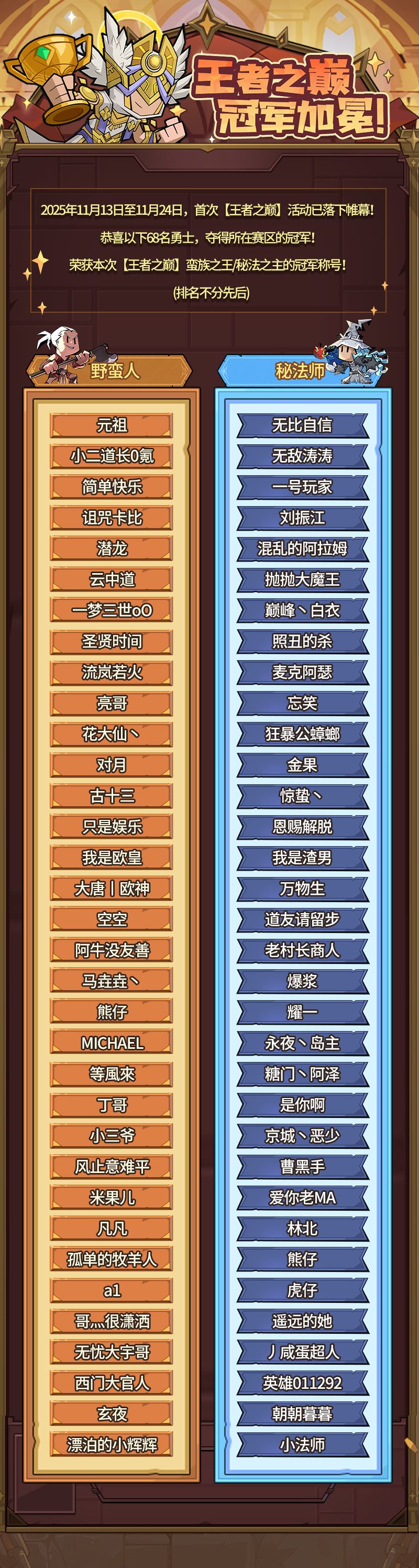 巅峰荣耀揭晓!首届【王者之巅】冠军名单震撼发布!