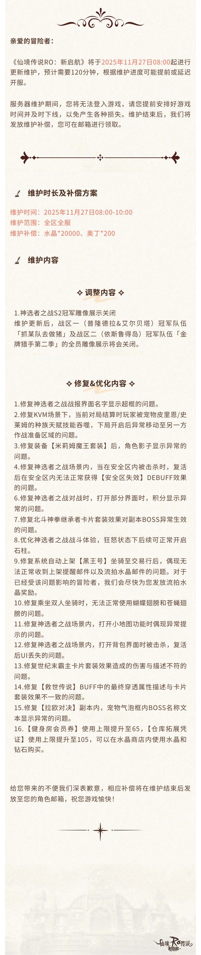 更新公告 | 11月27日更新维护公告