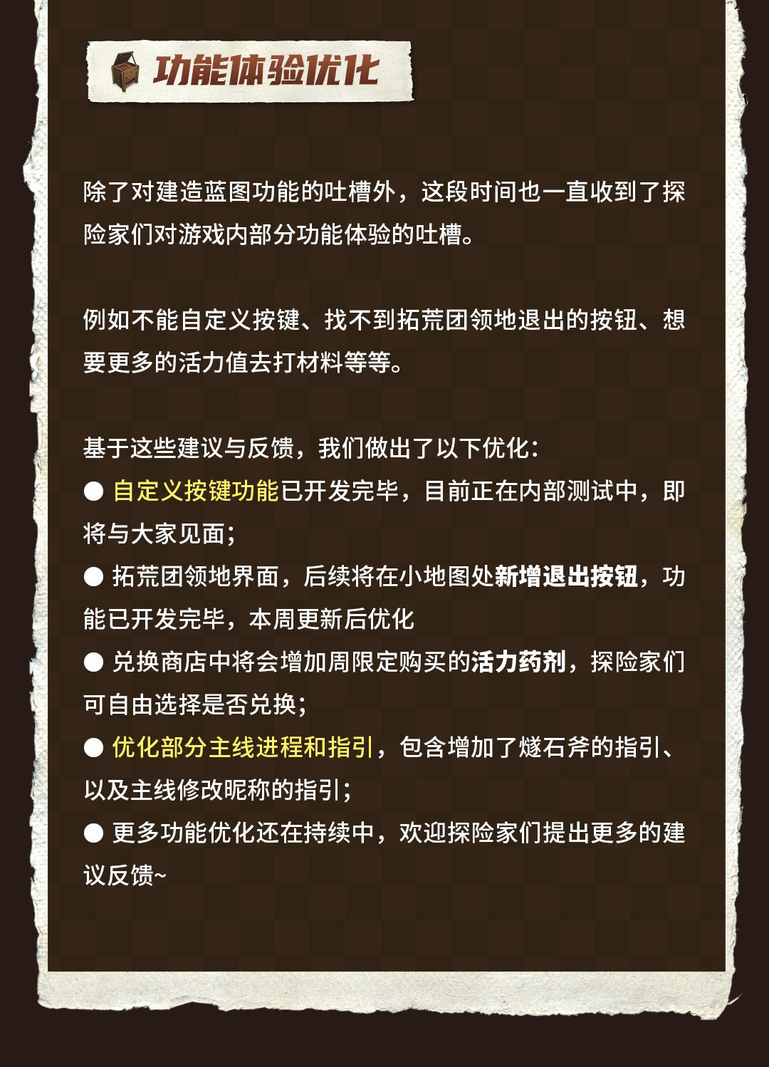曙光情报局 | 建造蓝图优化、自定义按键,统统安排上了!