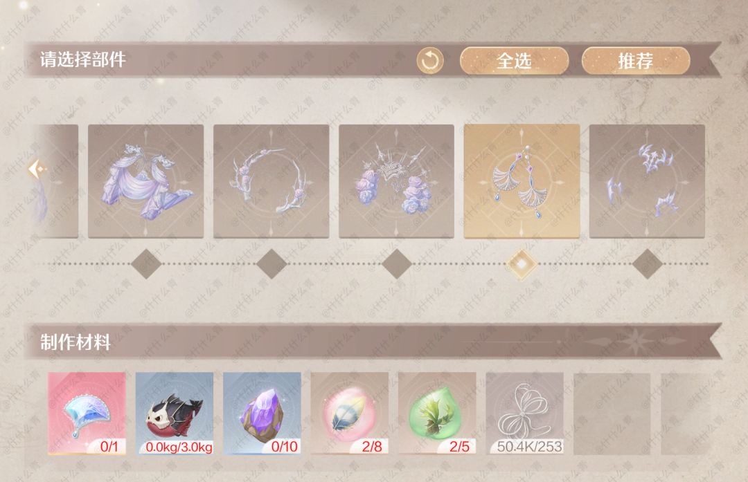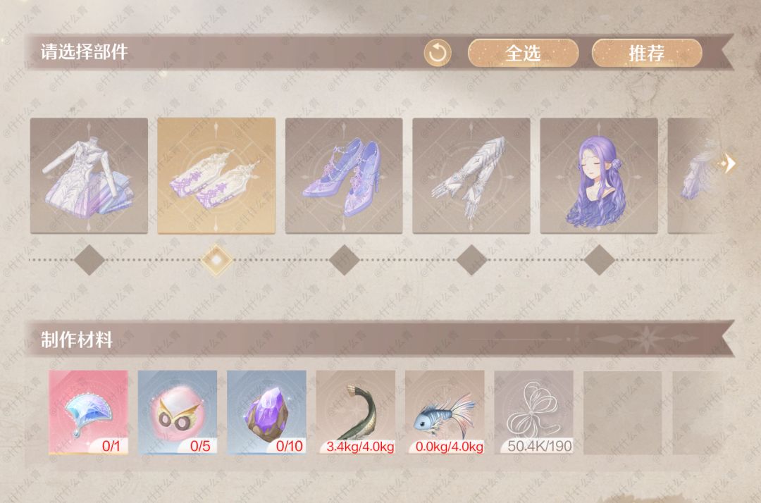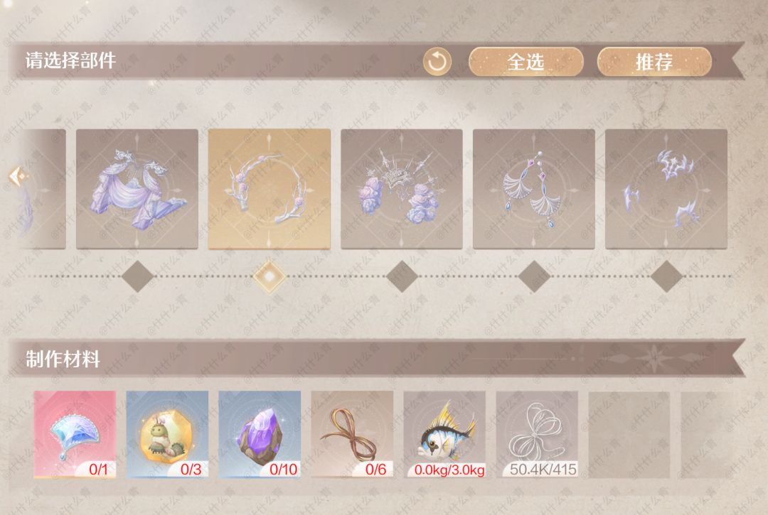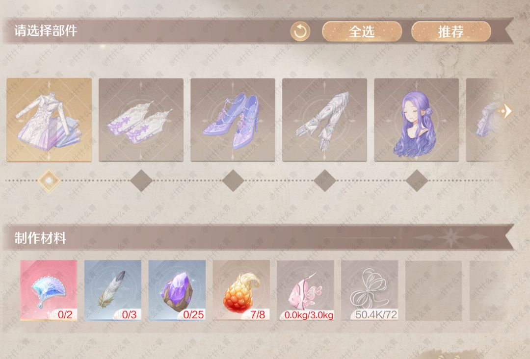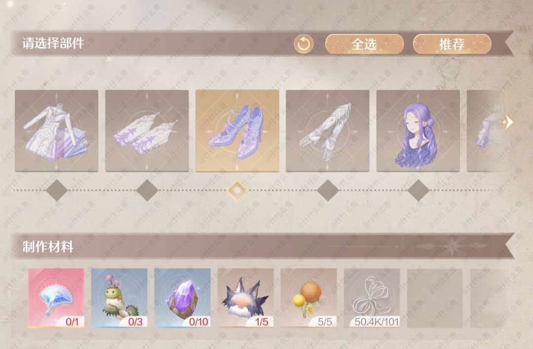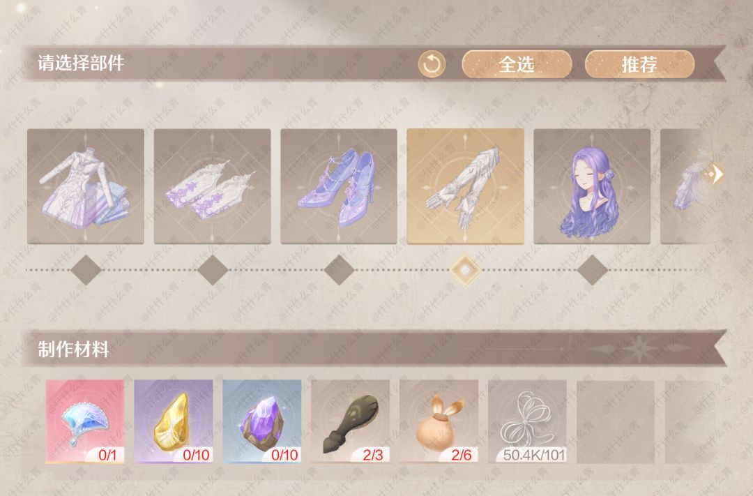 无限暖暖奇迹套装谒灵制作所需材料