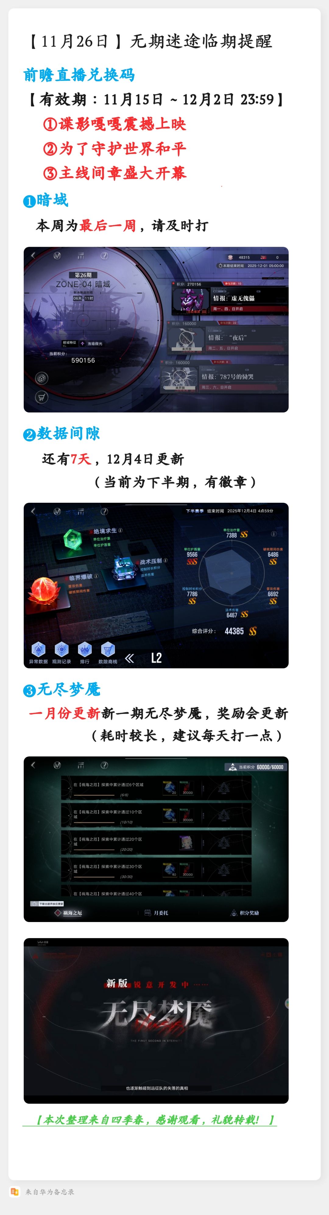 【11月26日】无期迷途临期提醒
