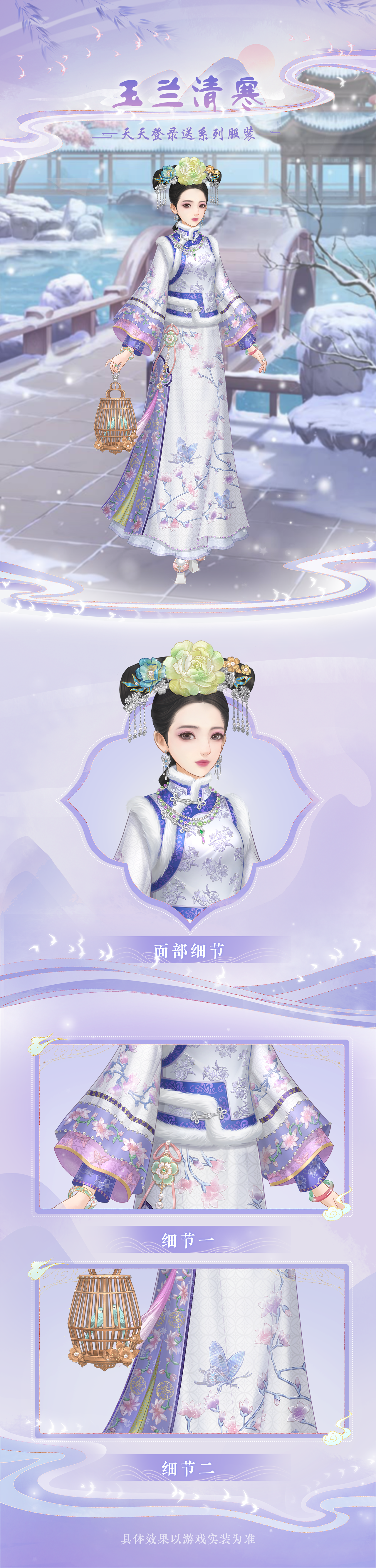 ※ 活动期间,每天登录即可免费领五星套装:玉兰清寒、联动专属随从:雍正帝、主题背景:雪中园林、雨后御苑,与丰厚道具奖励!