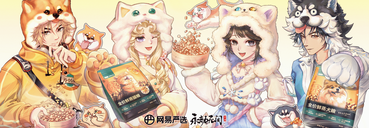 11月27日,明早8点起,抖音搜索 “网易严选鲜蒸猫粮”直播间,抽送【猫狗奇遇系列】联动外观、还有联动吧唧/镭射票周边等你来拿!