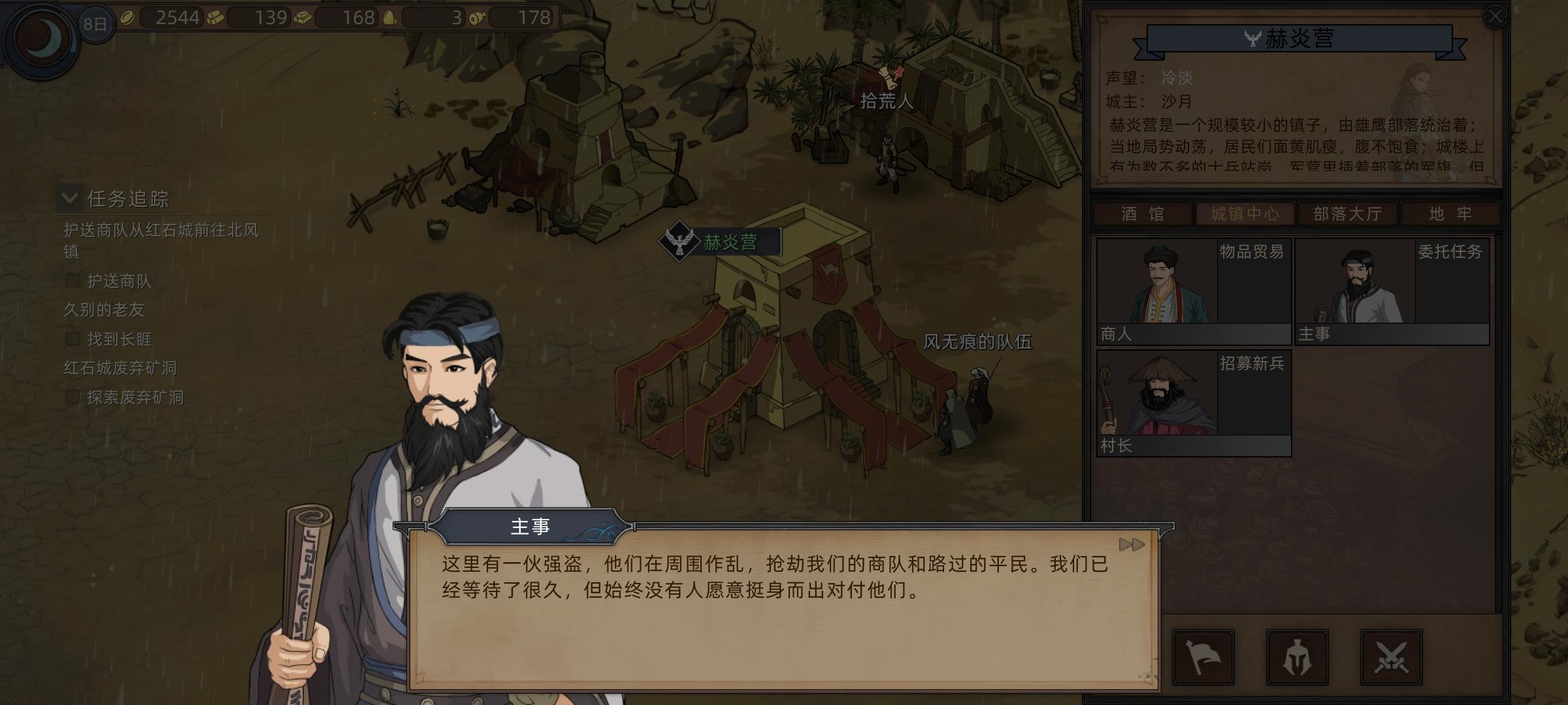 然后我们往右上走,在这里很可惜。这个城镇随机到强盗任务前期是打不过的,所以就不领了。继续往右上角探索打下副本
