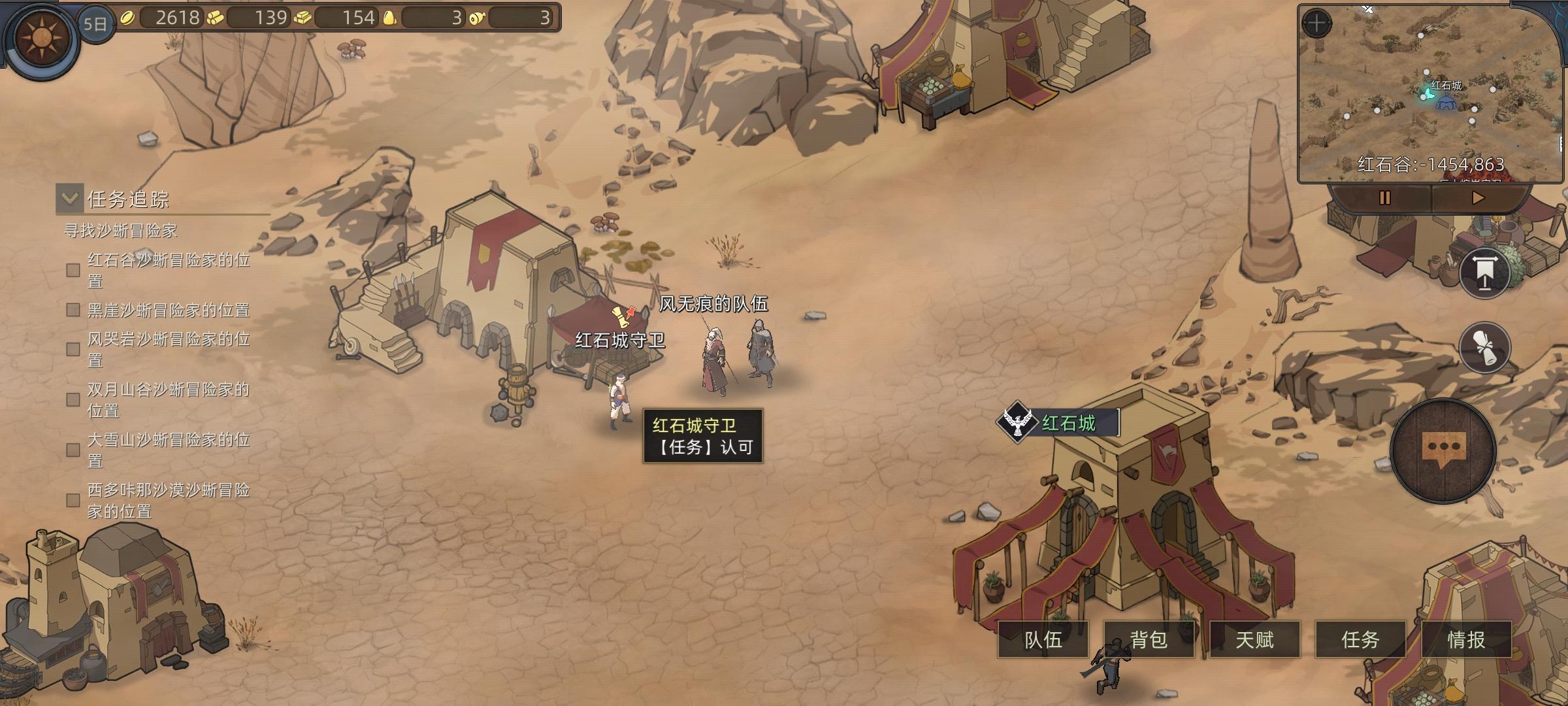 打完矿洞副本拿了装备我是可以直接去新地图的,因为我初始等级比较高。但为了照顾新手,这里往下走,把红石城支线任务都领了。然后去欣赏一下画师的优美画技讲述一个王朝故事,旁边的天赋碎片和谷沙的支线任务也顺手领了。