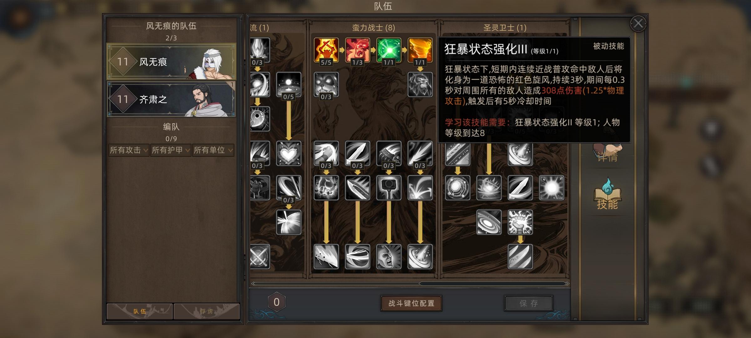 这里5点给了狂暴状态拉满,100%攻击和攻速,还有伤害减免。点到右边狂暴状态强化,大概平A十下会触发这个技能旋风效果。