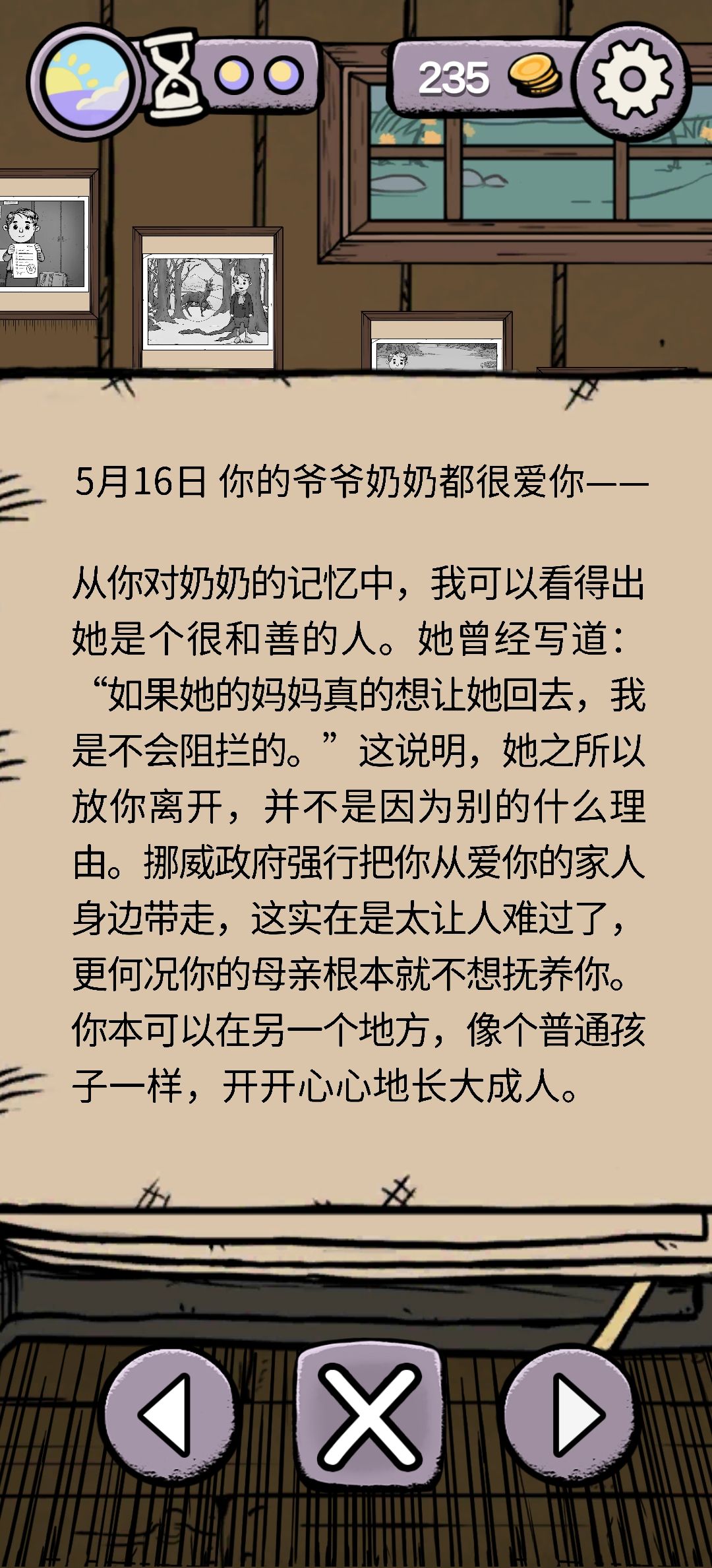 游戏根据真实故事改编的属性,就决定了玩家并没有多大的选择,克劳斯会经常被霸凌,只得在被欺辱后才能离开。玩家“我”虽然始终在关爱、鼓励、夸奖克劳斯,但并不会改变什么,因为历史本就如此,一切都真实发生过……