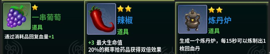 消耗品恢复血量:角色需要吃很多药瓶,但是满血才有效,提升这个属性可以帮助角色回复到满血,然后吃药瓶触发被动
