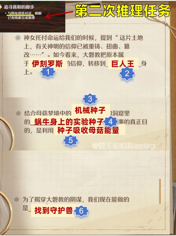 🏹追寻真相的脚步第二次推理:伊刻罗斯➡️巨人王 机械种子➡️蜗牛身上的实验种子➡️种子吸收母菇能量 找到守护兽