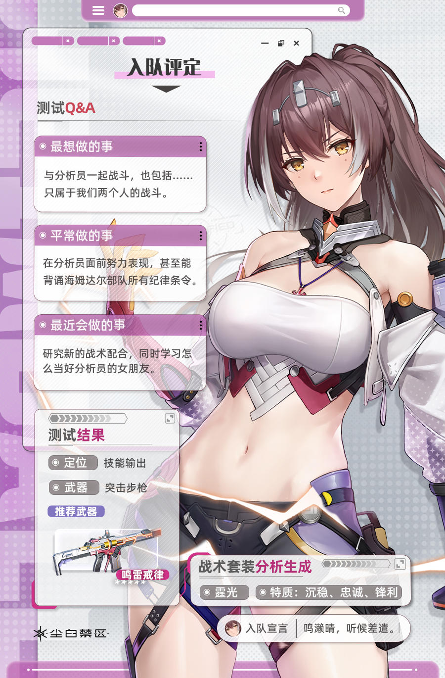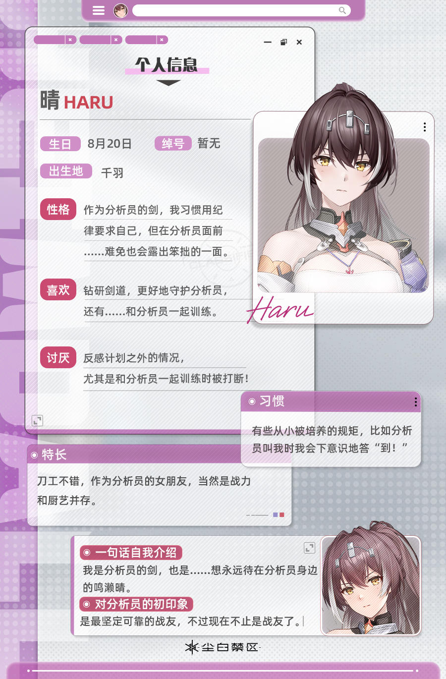 一直以来,晴都想要变得更加强大,同时也在努力找寻着变强的理由。那份想要与分析员并肩前行的愿望,以及想要守护分析员的心意,最终铸就了少女那独一无二的剑心。当晴能做到人剑合一时,便能斩断一切。然而霆光的意义并非为了斩断,而是为了能连接一切情感、责任以及回忆。