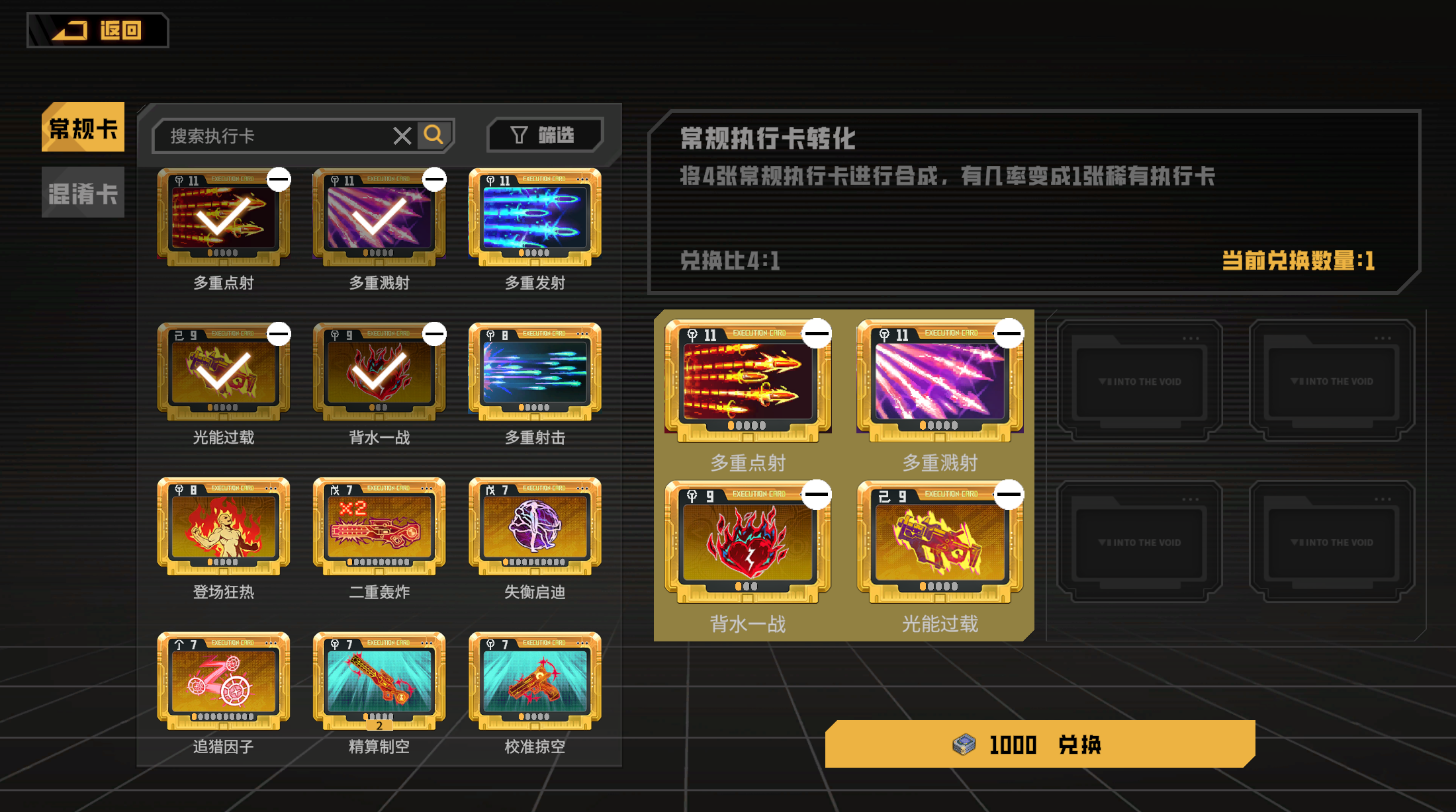 常规执行卡:消耗四张常规执行卡和适量的新联币进行逆编译,有概率逆编译成更稀有的卡。