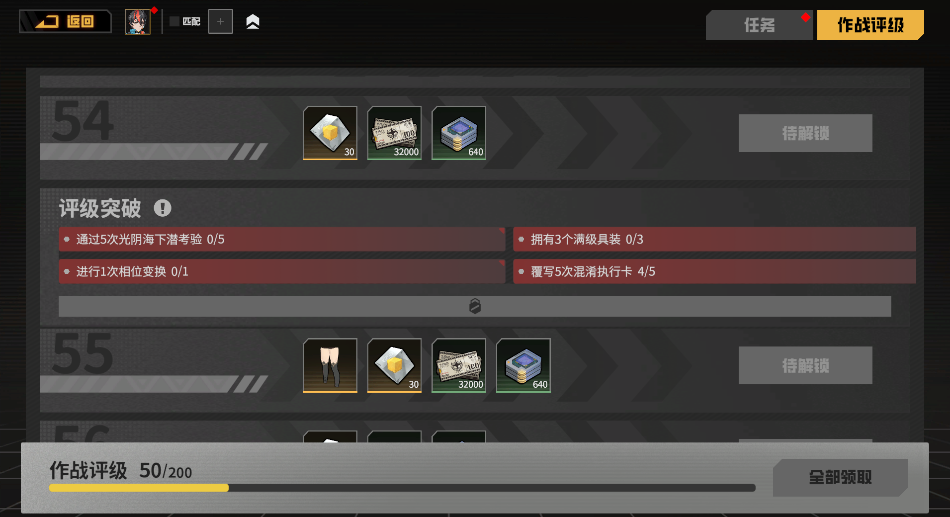 “作战评级”系统新增了明确的突破条件。在指定评级完成对应挑战,即可提升你的作战评级。