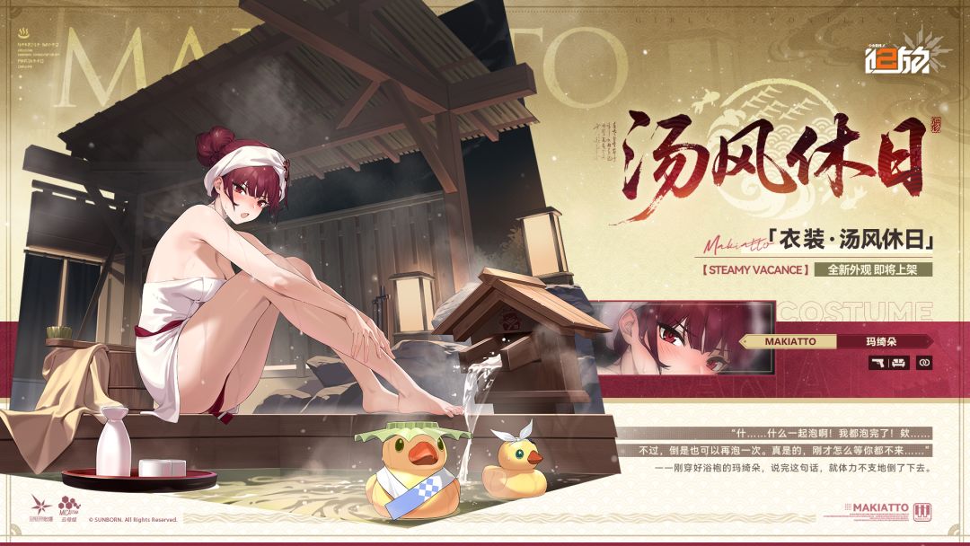尊敬的指挥官,玛绮朵可换装部件套装<衣装·汤风休日>将于12月2日维护后 商城直购&新装采购同步开启,欢迎指挥官届时前往选购并更换。