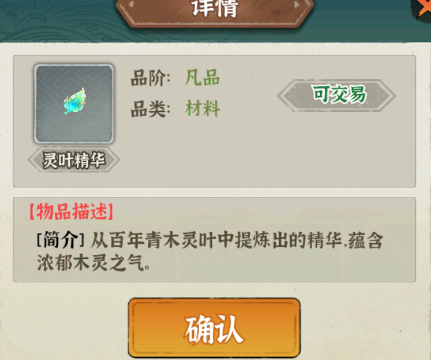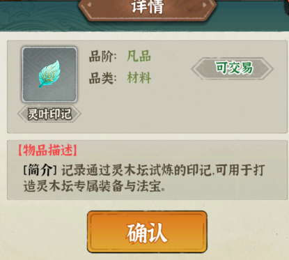 - 说明:通过青木试炼后凝聚成的灵叶印记,是打造青木试炼系列法宝的通用关键材料。
